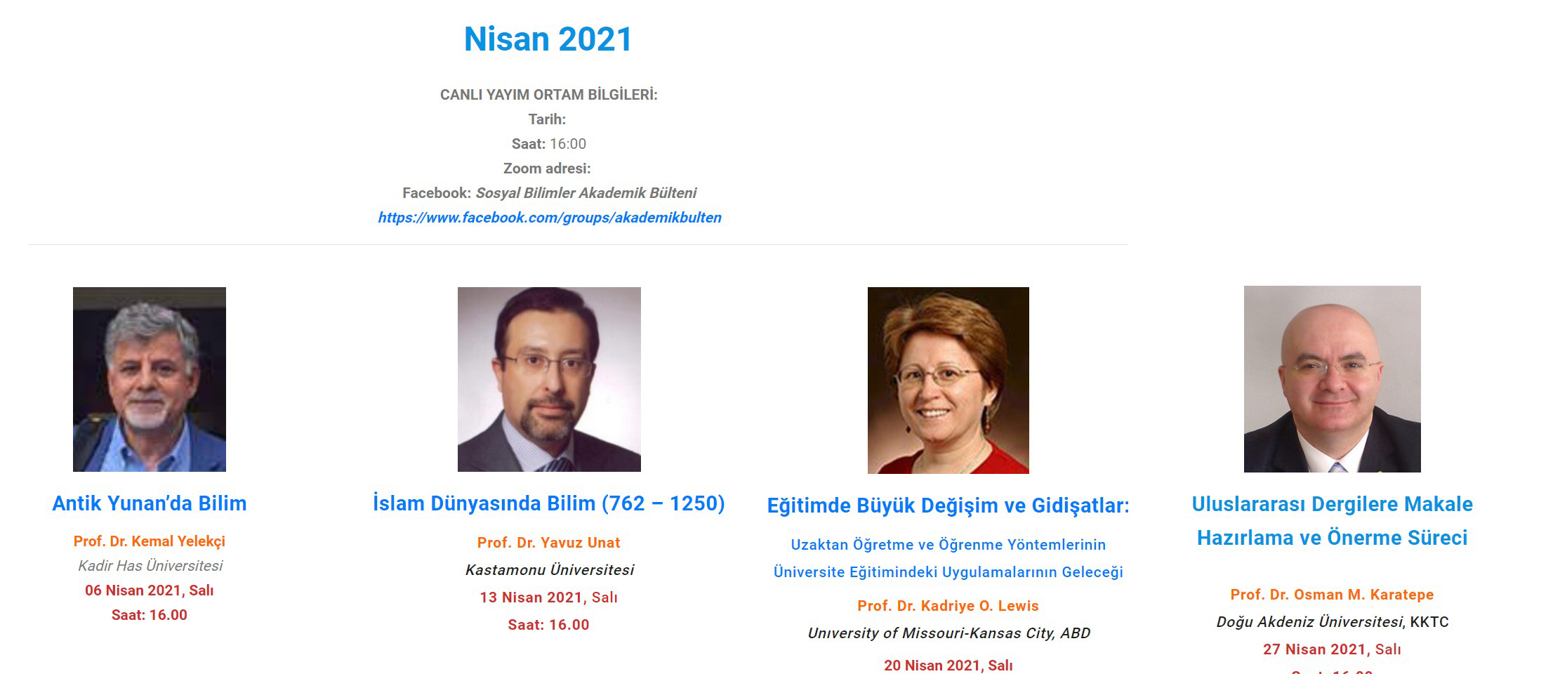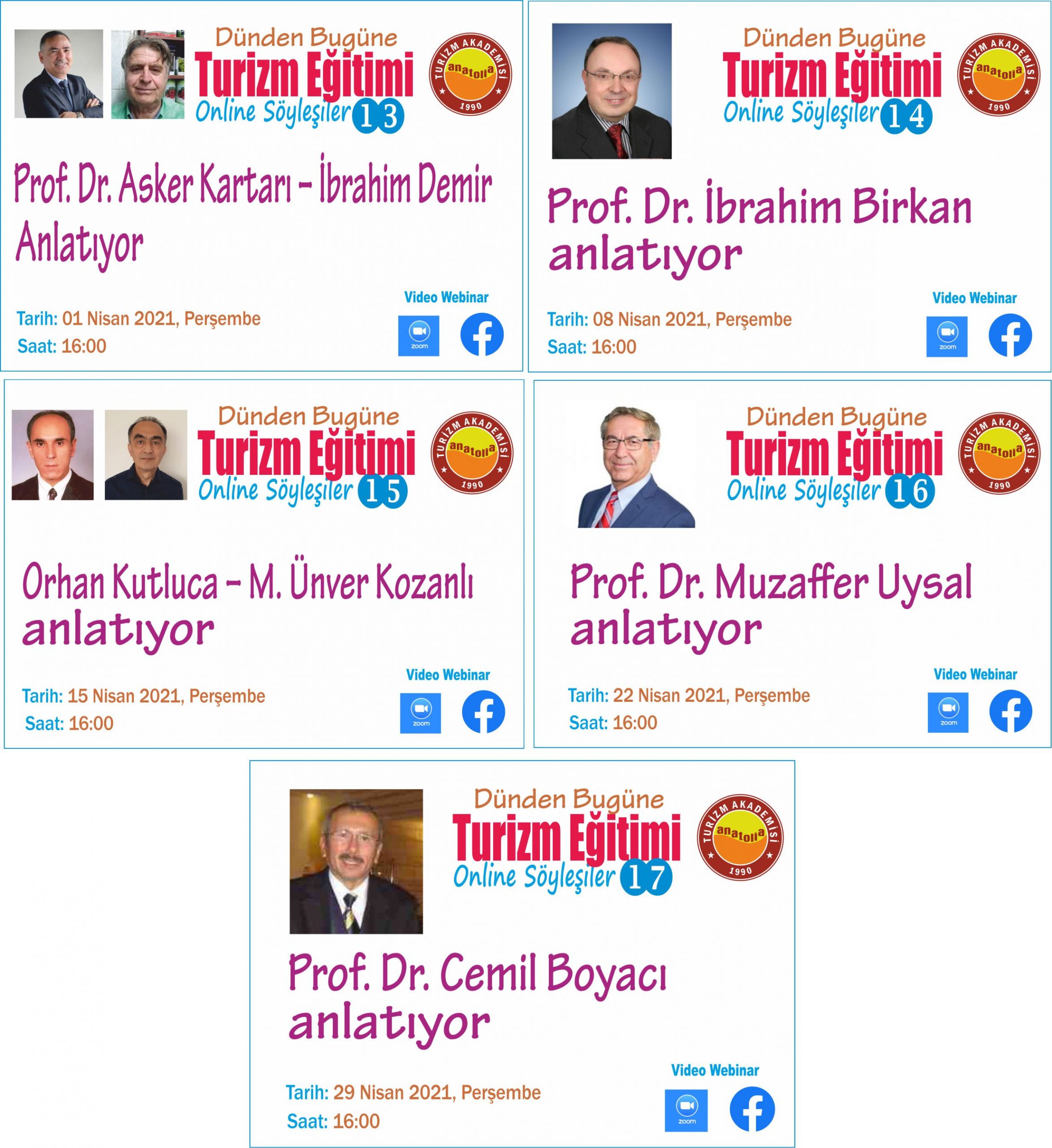 Zoom ve Facebook yayım adresleri her bir söyleşinin yapılacağı günün aşağıda yer alan internet adresinde yayımlanacaktır. https://anatoliajournal.com/akademi/ “Katrajımda Antalya Fotoğraf Yarışması"Profesyonel otel Yöneticileri derneği (POYD) düzenlediği ‘'Ulusal Fotoğraf Yarışması-2021'' ile turizm için Antalya'nın neden seçildiğini belirleyecek. Ulusal Fotoğraf Yarışması-2021'' POYD ile Sille Sanat Sarayı tarafından organize ediliyor. Yarışma dijital olarak tek kategoride yapılacak. Fotoğraflarda jürinin arayacağı kadrajlar; “Antalya'ya turist olarak gelmek isteyen kişilerin neden Antalya'yı seçtiğini gösterecek kadrajlar” olacaktır. İçinde insan unsurunu da bulunduran ve Antalya'nın tarihi, doğal güzellikleri ve kültürünü içeren fotoğraflar bu anlamda Antalya'nın turizm için neden seçildiğinin bir anlamda görsel kanıtları olacaktır. Yarışmaya Antalya ili sınırları içinde çekilmiş fotoğraflar katılabilecektir. Ayrıntılı bilgi için bkz. LİSANSÜSTÜ TEZ ÇALIŞMALARI (Bölüm Sorumlusu: Hatice GÜÇLÜ NERGİZ)