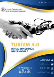 7. Bilkent Turizm Forumu yapıldı. Bilkent Üniversitesi Turizm ve Otel İşletmeciliği Bölümü tarafından düzenlenen ve altıncısı 2002 yılında yapılmış olan Bilkent Turizm Forumları'nın, yedincisi 12 Aralık 2018 tarihinde gerçekleştirildi. Dünya genelinde yaşanan küreselleşme ile birlikte gözlemlenmekte olan ekonomik, sosyal, kültürel ve özellikle de teknolojik gelişmeler, turizm sektörünün dijitalleşerek güçlenmesini kaçınılmaz kılması dolayısıyla “Turizm 4.0” konusu 2018 Bilkent Turizm Forumu için ana tema olarak seçildi. Göreve Atanma / Ünvana Yükseltilme